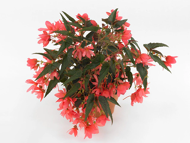 Бегония "Liebe" - это прекрасное растение, которое поражает своей красотой и изящностью. Ее листья имеют ланцетную форму и острые кончики, с зазубренными краями. Общая форма растения пендельный, а цветы одиночные, с диаметром 6,5 - 7 см, их цвет варьируется от розового до средне-красного оттенка. Растение достигает высоты от 10 до 20 см, а диаметр куста составляет от 40 до 50 см.