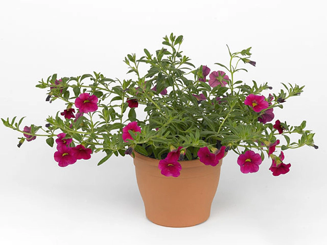 Калибрахоа "Cabaret Cherry Rose" прекрасно смотрится в горшках на подвесных горшках или висячих корзинах, где ее пендулирующий вид роста создает завораживающий зеленый ковер, усыпанный красивыми розовыми цветками.