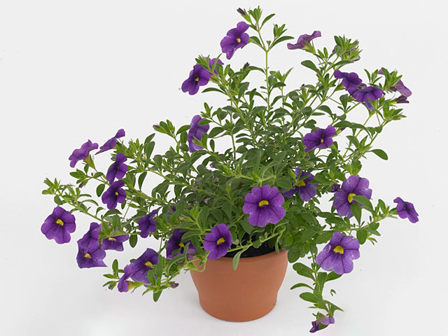 "Калибрахоа "Aloha Purple" предпочитает солнечные условия освещения и требует хорошо дренированной почвы. Цветы этого сорта имеют уникальную окраску и узор, что делает их особенно привлекательными. Они также имеют средний фиолетовый оттенок в дополнение к темно-фиолетовому цвету, что придает им еще большую привлекательность.
