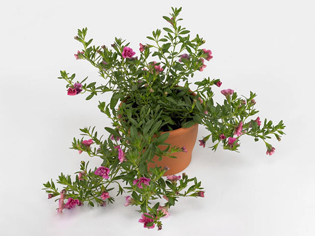 Калибрахоа "Minifamous Double Dark Pink" - это удивительное растение с двойными цветками, имеющими интересное сочетание оттенков розового и темно-синего. Это растение имеет ланцетные листья темно-зеленого цвета, идеально подходящие для создания контраста с яркими цветками.