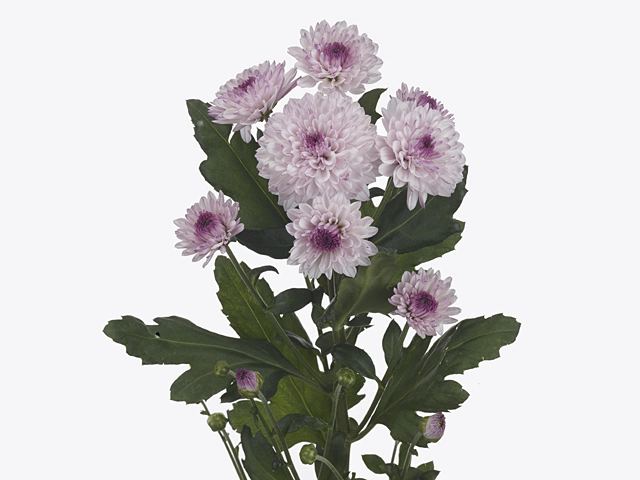 Листья хризантемы индийской спрей "Lollipop" имеют темно-зеленый оттенок и разделены на несколько сегментов, что добавляет растению особой изящности и грации. Кроме того, цветки хризантемы "Lollipop" имеют двухцветное распределение цвета, что придает им особое очарование. Пурпурно-голубой цвет образует красивую границу вокруг края цветка, что делает каждый цветок уникальным и запоминающимся.