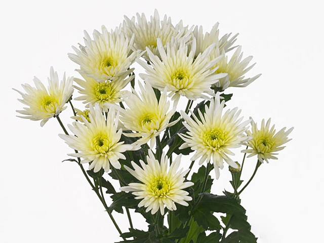 Хризантема индийская спрей "Delianne" представляет собой один из самых красивых видов хризантем, благодаря своей уникальной двойной цветковой форме. Этот сорт обладает широким спектром белых оттенков, максимально приближенных к идеальной чистоте цвета, что делает его особенно востребованным в цветочных композициях и букетах.