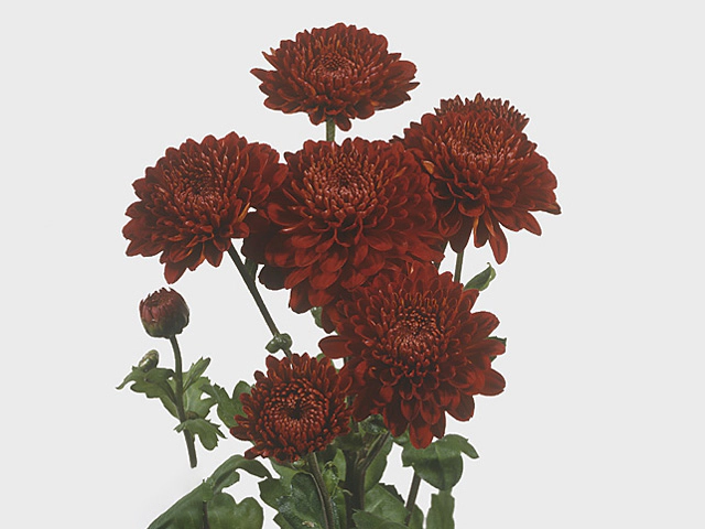 Хризантема индийская спрей "Wendy Rood" - это невероятно красивый сорт растения с множеством двойных цветков. Их цвет красно-темно-пурпурный, что придает цветку особую загадочность и привлекательность. Диаметр цветка составляет от 6 до 6,5 см, что делает его достаточно крупным и заметным. Хризантема "Wendy Rood" формирует соцветия-кисти, что придает растению еще больше визуального обаяния.