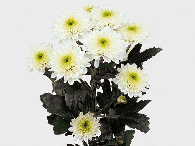 Хризантема индийская спрей "Ibis" - это вид растения с двойными (пленифлорными) цветками, который отличается красивым внешним видом и необычным цветом. Цветки данной хризантемы имеют диаметр от 5 до 5,5 см и окрашены в белый цвет с оттенком 999D, что создает удивительный визуальный эффект.