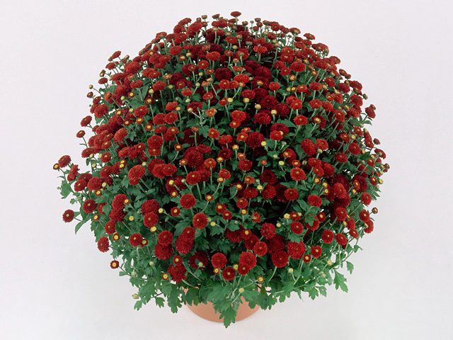 Хризантема индийская "Moulin Rouge" - это обильноцветущий сорт с двойными (пленоцветными) красно-темно-пурпурно-красными цветками диаметром 2,5 - 3 см. Цветы этой хризантемы не имеют запаха, но их красота более чем компенсирует этот недостаток.