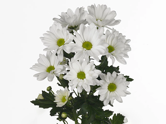 Хризантема индийская спрей "Bacardi" - это красивое и удивительное растение, которое привлекает внимание своими изящными белыми цветками. Это одиночные цветы имеют диаметр от 6 до 6,5 см и создают красивое впечатление при виде. Цветки образуются на стебле в виде кисти, что делает их еще более привлекательными.