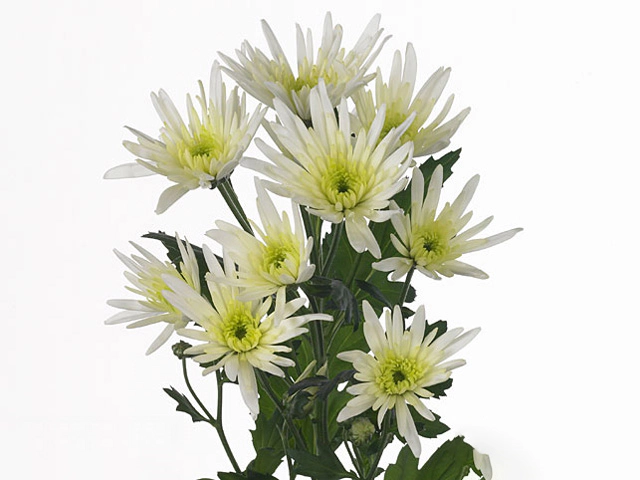 Хризантема индийская спрей "Delianne White" - это один из самых прекрасных и изысканных сортов хризантем на сегодняшний день. Этот сорт отличается слегка махровым типом цветка, его цветочный аромат не имеет, а сам цветок имеет белый цвет, представленный в самых светлых оттенках, близких к 999D по шкале цветов.