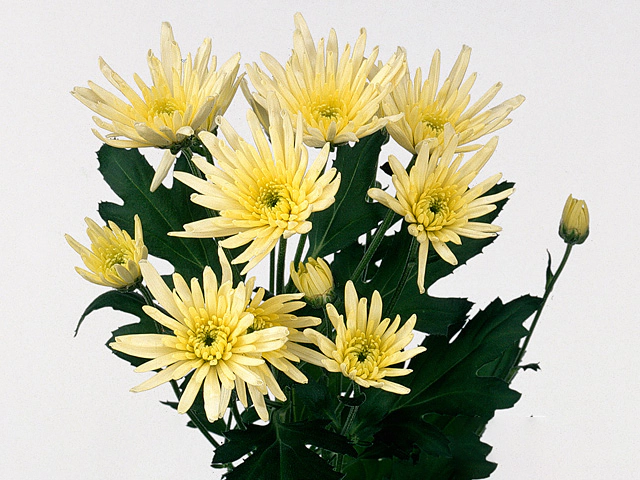 Цветение хризантемы индийской "Delianne Cream" длится длительное время, что делает этот сорт особенно ценным для любителей цветочного озеленения. Ее цветки имеют характерную форму со множеством узких лепестков, создающих великолепный цветочный мяч. Высота растения достигает около 60 см, что делает его идеальным для выращивания в горшках и контейнерах, а также для создания красивых цветочных композиций в саду.