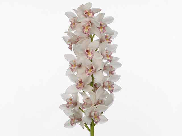 Цимбидиум мини "Belinda" - это вид растения с непахучими цветками диаметром от 7 до 7,5 см. Цветки бело-белого цвета с приглушенным оттенком фиолетового. Инфлоресценция представляет собой молочище длиной от 30 до 40 см. Губа цветка имеет средне-коричнево-пурпурный оттенок, с белыми пятнами. Распределение цветов на губе и цветке является пестром. В целом, Цимбидиум мини "Belinda" имеет двухцветное распределение цветов и эстетичный внешний вид.