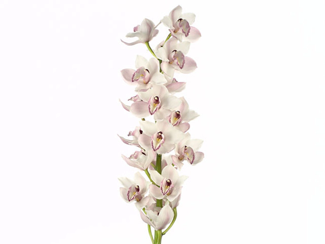 Цветки расположены на соцветии, образующем распространенный у орхидей тип соцветия – кисть. Каждое соцветие может содержать от 5 до 12 цветков. Цимбидиум крупноцветковый "Pacific Cloud" отличается красивым сочетанием белого и фиолетового цветов, что делает его весьма привлекательным для оформления букетов и цветочных композиций.