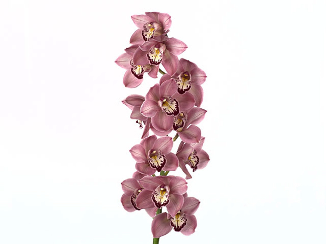 Цимбидиум крупноцветковый "Jet Set" - это великолепное растение с невероятно красивыми цветками. Его цветы имеют диаметр от 9,5 до 10 см и имеют вид соцветия. Цветок имеет основной розово-темно-синий оттенок (070C), с добавлением красно-темно-пурпурных (187C) вторичных оттенков. Они не имеют запаха, что делает их идеальными для тех, кто не переносит сильные ароматы.