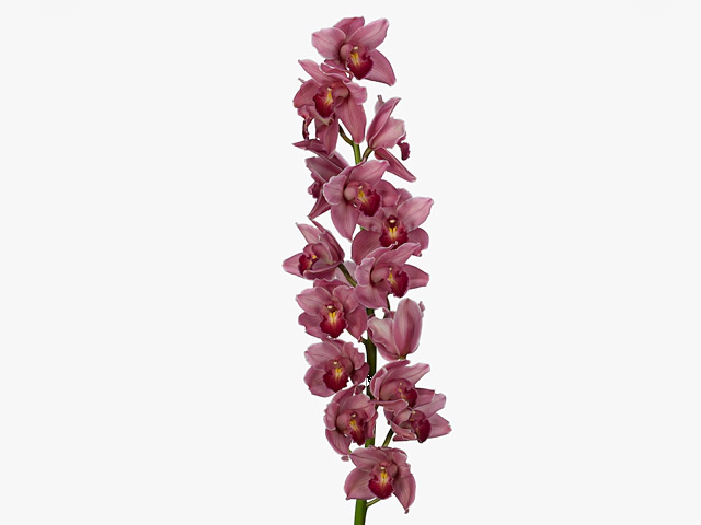 Цимбидиум "Robert Row" представляет собой колосовидное соцветие длиной от 50 до 75 см. Ярко-красная или темно-пурпурная окраска губы с белым, розово-голубым и красно-коричневым переливами делает этот цветок по-настоящему экзотическим и привлекательным.