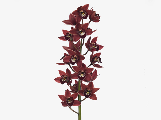 Цимбидиум мини "Georgina" - это удивительное растение с красивыми цветками. Цветы этого растения имеют диаметр от 6,5 до 7 см, окрашены в темно-пурпурно-красный цвет с красными и белыми прожилками. Цветы собраны в соцветии, длиной от 25 до 30 см. Цимбидиум мини "Georgina" не имеет запаха.