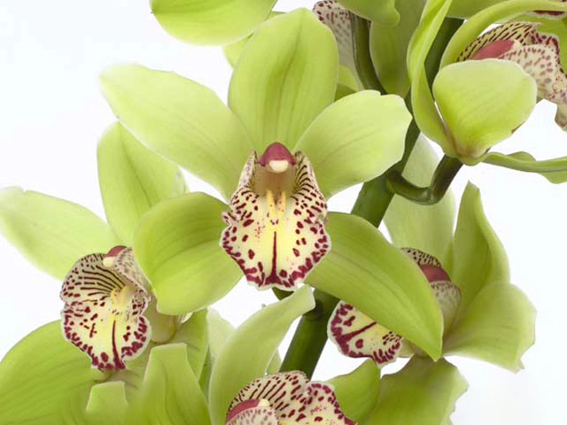 Цимбидиум крупноцветковый "Hans" - это великолепное растение, которое поражает своими крупными и красивыми цветками. Цветки этого растения имеют диаметр от 11 до 12 см, окрашены в зеленый-светло-зеленый (145B, 145C) цвета, а также имеют дополнительные оттенки белого-белого (999D) и красно-темно-фиолетового (059C). Важно отметить, что аромат цветов слабый.