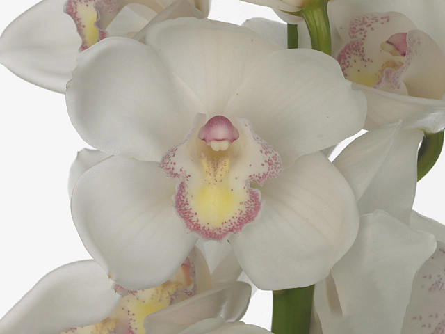 Цимбидиум крупноцветковый "Kiwi Showtime" - это удивительный вид орхидеи, который поражает своими крупными белыми цветками диаметром 11-12 см. Этот сорт орхидеи отличается отличным ароматом, отсутствием запаха, что делает его идеальным выбором для тех, кто предпочитает растения без ярко выраженного аромата.