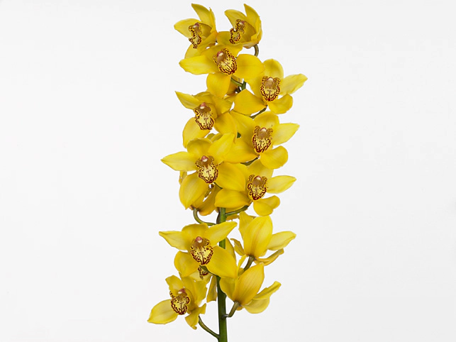 Цимбидиум крупноцветковый "Classic" - это вид растения с красивыми цветками, которые имеют умеренный аромат. Цветки этого растения имеют желтый-средне-желтый оттенок и достигают диаметра 11-12 см. Инфлоресценция представляет собой соцветие длиной 40-50 см, на котором можно увидеть многоцветие цветков. Вторичный цвет цветка имеет темно-красно-фиолетовый оттенок.