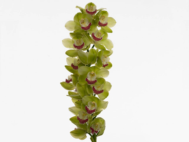 Цветок Цимбидиума крупноцветкового "Miretta" имеет зеленовато-светло-зеленую окраску основания и диаметр от 11 до 12 см. Инфлоресценция представляет собой соцветие, которое состоит из нескольких цветков и делает растение еще более привлекательным.