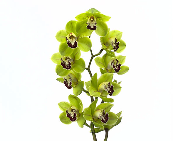 Одной из самых впечатляющих особенностей Цимбидиума крупноцветкового "Gert" является его цветение. Цветок имеет зеленовато-светло-зеленую окраску, что придает ему особый шарм. Диаметр цветка составляет 12-13 см, что делает его достаточно крупным и заметным. Цветок собран в соцветие - расположенное на стебле от 30 до 60 цветков. Дополнительно к зеленоватому цвету у него имеется вторичный цвет - более темно-пурпурно-красный и белый, что придает цветку необычный вид и делает его еще более привлекательным.
