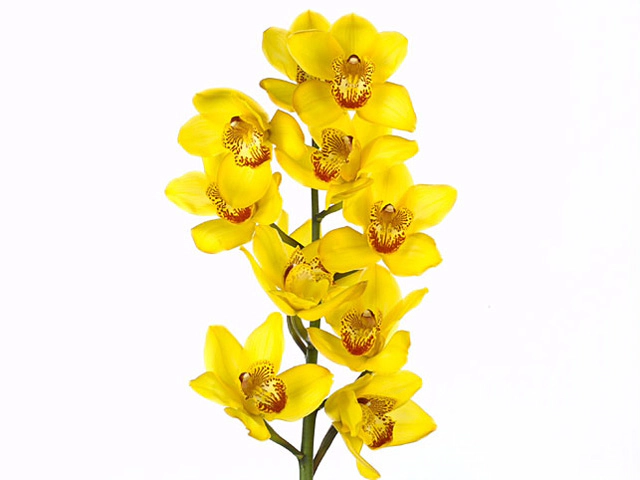Цимбидиум крупноцветковый "Fleurijn" – это вид орхидеи с крупными желтыми цветками, обладающими слабым ароматом. Диаметр цветка составляет от 12 до 13 см. Инфлоресценция представляет собой соцветие, состоящее из крупных цветков.