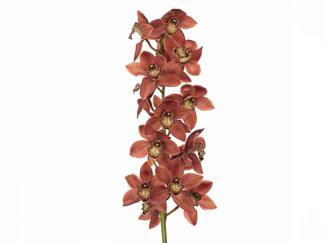 Цимбидиум крупноцветковый "Brown Eye" – это эпифитное растение семейства орхидных. Его цветы не имеют запаха и имеют диаметр от 11 до 12 см. Цветки представляют собой красивые крупные соцветия. Основной цвет цветка – коричнево-красный, а вторичный цвет – белый-светло-желтый с оттенком оранжевого. Это создает красивый контраст и делает цветок по-настоящему уникальным.