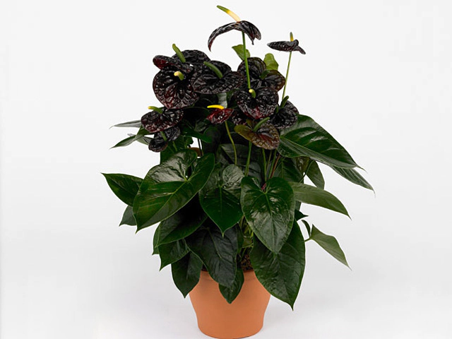 Speaking of flowers, the Anthurium Black Queen produces magnificent blooms that are sure to captivate. The flower color ranges from brown to dark brown, with the specific shade being described as 187A. This deep and intense hue adds a touch of drama and sophistication to the overall look of the plant. The flowers have an impressive diameter of 13-14 cm, making them a prominent feature that catches the eye.