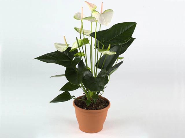 Although the primary flower color is white-white-155B, the Anthurium also showcases secondary colors on its blooms. These secondary colors range from green to medium green-144A, adding dimension and diversity to the overall appearance of the plant.