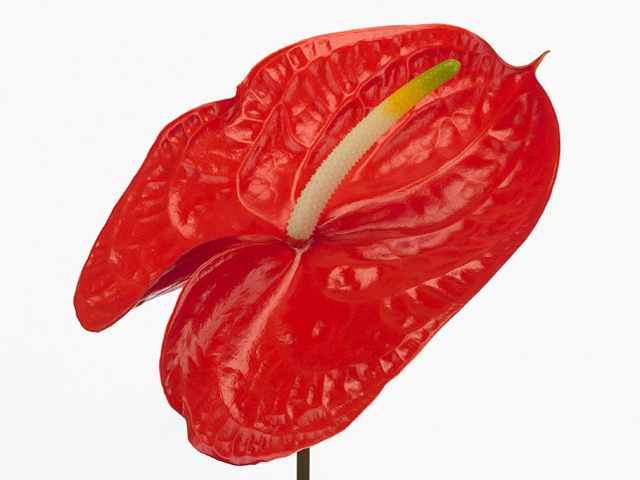 When it comes to color distribution, the Sharan~FLAMINGO PLANT showcases a unicolored appearance. Its flowers exhibit a consistent and uniform hue throughout, adding elegance and sophistication to any space. The red-medium red-044A shade remains constant across each flower, creating a cohesive and harmonious appearance.