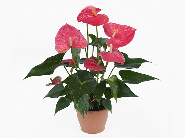 In conclusion, the Anthurium (Andreanum Grp) Colorado, or Flamingo Plant, is a breathtaking variety that boasts heart-shaped, dark green leaves and striking pink-medium red flowers. With its compact size and unique inflorescence, it is sure to capture the attention and admiration of anyone who lays eyes on it. So, why not bring a touch of elegance and color into your home with the beautiful Flamingo Plant?