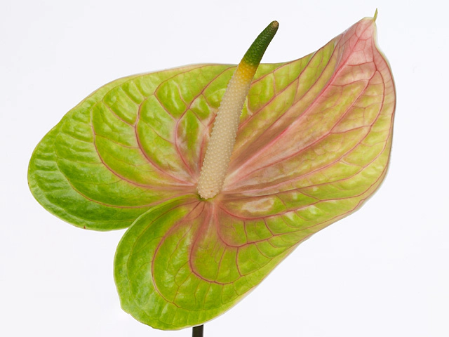 The flower color distribution of the Flamingo Plant is veined and bicolored. Veins of varying shades travel through the petals, adding depth and texture to the overall appearance. The combination of different colors within each bloom creates a captivating and eye-catching effect.