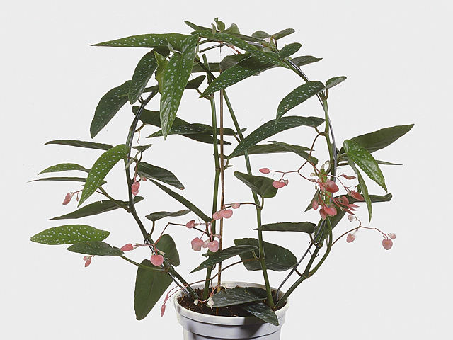 The general shape of the leaves is elongate, creating an attractive and graceful appearance. The inflorescence is few-flowered, meaning that the plant produces a small number of flowers at once. This adds a sense of exclusivity and rarity to the begonia, making it even more special.