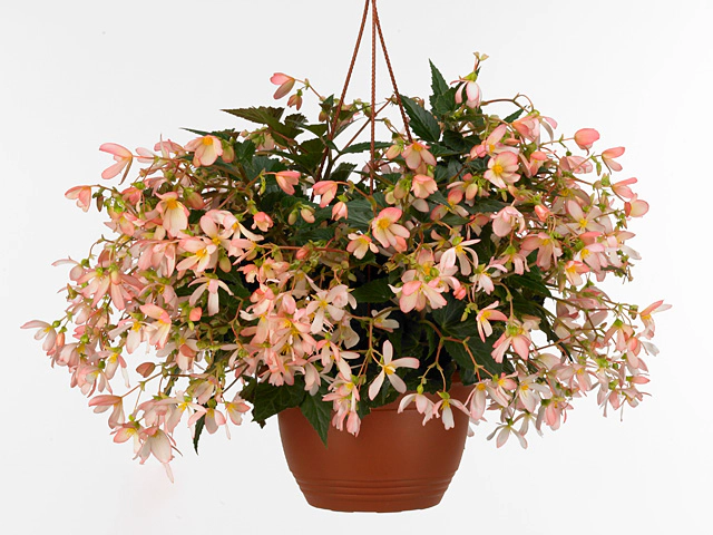 With pointed/acute leaf tips and serrated leaf margins, the Begonia Waterfall Dreams Angel Soft Pink has an interesting and textured foliage. The leaves are ovate or egg-shaped and can grow to a size of 10-15 cm. The plant itself has an erect growth type, but its trailing habit makes it perfect for hanging baskets or cascading over walls.