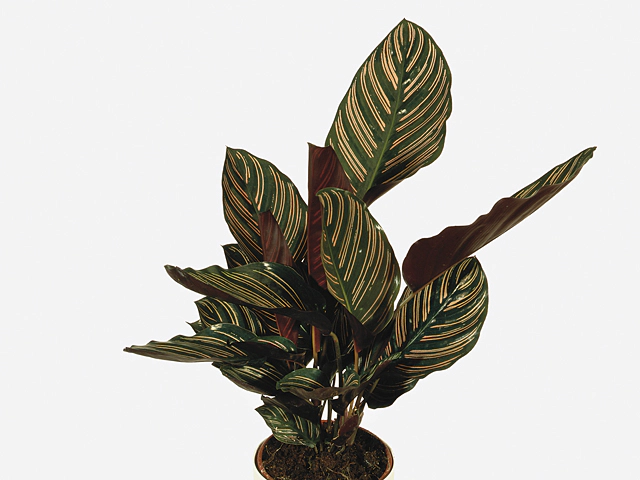 The leaves of Calathea sanderiana are considered foliage leaves, meaning they are primarily grown for their attractive appearance rather than any specific culinary or medicinal value. The leaves are broad and divided into a simple leaf division structure. They are usually held on an erect stem, allowing the plant to grow upright and create a stunning display.