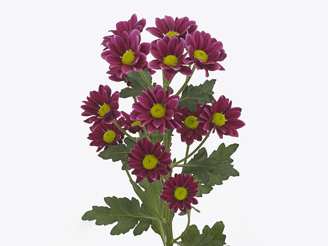 Unicolored in its flower color distribution, this chrysanthemum variety maintains a consistent and cohesive appearance. The uniformity of color throughout each petal creates a harmonious and visually pleasing display. Whether used individually or in combination with other flowers, the Chrysanthemum (Indicum Grp) spray Haydar Purple effortlessly brings a touch of sophistication and style to a floral arrangement.