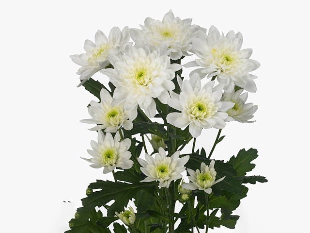 Whether adorning a vase, accentuating a bridal bouquet, or simply bringing joy to a garden, the Chrysanthemum (Indicum Grp) Spray Zehnya is a remarkable flower that captures the hearts of all who encounter it. Its double blooms, pristine white hue, substantial size, intricate inflorescence, pinnatifid leaf division, and unicolored distribution make it an exceptional choice for all floral enthusiasts.