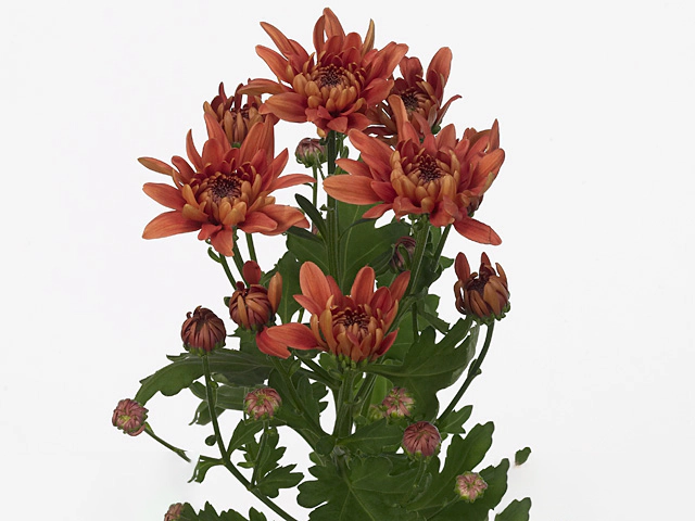 The Chrysanthemum (Indicum Grp) Spray Bretagne Orange is not a one-color wonder. It also incorporates secondary hues, including brown-orange brown-168C and red-brown red-179A. These secondary colors provide a stunning contrast to the dominant orange-red tone, creating a visually striking composition.