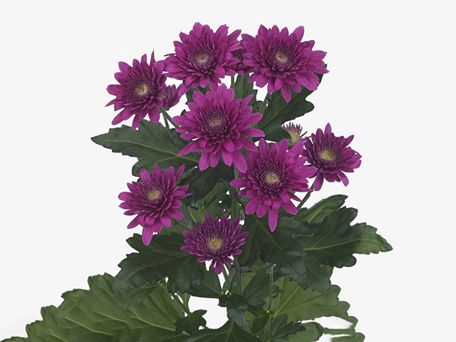 In conclusion, the Chrysanthemum (Indicum Grp) spray Barca Splendid is a chrysanthemum variety that possesses numerous striking features. From its double pleniflorous flowers to its unique capitulum inflorescence, this chrysanthemum is a showstopper. The divided leaf structure serves as the perfect complement to the vibrant blossoms, while the unicolored purple-medium purple hue adds an element of elegance and sophistication. Whether you are looking to enhance your garden or create a stunning floral arrangement, the Chrysanthemum (Indicum Grp) spray Barca Splendid is sure to impress.