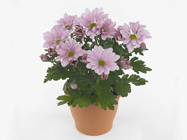 In conclusion, the Chrysanthemum (Indicum Grp) is a lovely flowering plant known for its single, purple-light violet flowers. With a compact height and an inflorescence in the form of a capitulum and raceme, it offers a unique and eye-catching display. The pinnatifid leaves, divided into deep lobes, contribute to the plant's overall appeal. Whether planted in a garden or used as a cut flower, the Chrysanthemum (Indicum Grp) is sure to add a touch of elegance and beauty to any setting.