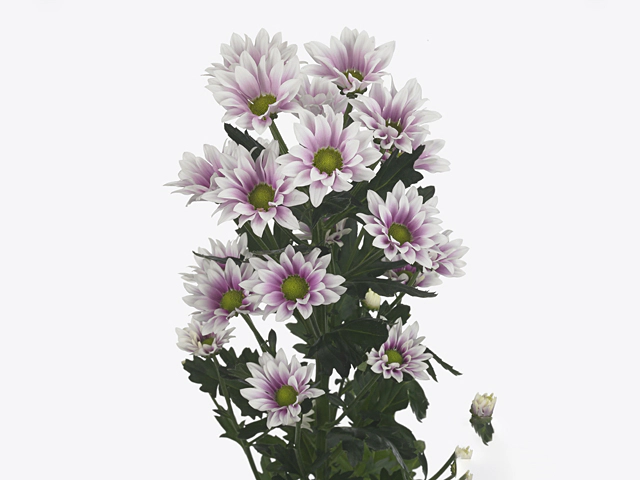 In conclusion, the spray Classico chrysanthemum, with its single white-white and purple-light violet flowers, is a true marvel of nature. Its small yet stunning blooms, divided leaves, raceme or capitulum arrangement, and bicolored petals make it a standout in any garden or floral arrangement. Whether you are a lover of flowers or simply appreciate their natural beauty, the Classico chrysanthemum is a must-have addition to your collection.
