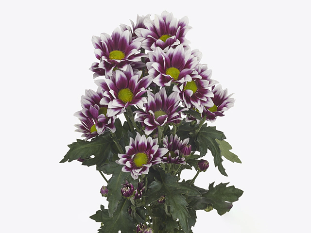 In conclusion, the Together spray chrysanthemum, with its single flower type, purple-dark purple and white-grey coloration, small diameter, raceme or capitulum inflorescence, divided/split leaf division, and bicolored flower color distribution, is a remarkable addition to any garden or floral arrangement. Its exquisite beauty and unique attributes make it a standout among other chrysanthemum varieties, captivating all who lay eyes upon it.