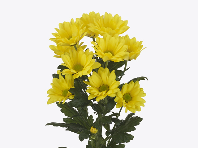 Whether used as a focal point or as part of a larger arrangement, the Chrysanthemum (Indicum Grp) spray Aurelia is sure to impress. Its vibrant, unicolored yellow flowers, combined with its unique inflorescence and divided leaf divisions, make it a standout choice for any floral enthusiast or gardener.