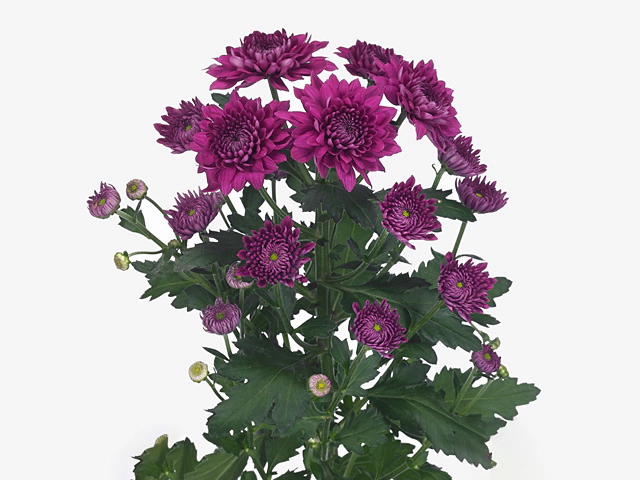 In conclusion, the Chrysanthemum spray Royce is a striking flower variety that impresses with its pleniflorous double blooms, captivating purple-medium purple color, raceme or capitulum inflorescences, divided leaf divisions, and unicolored flower distribution. With all these remarkable characteristics, it is no wonder that this Chrysanthemum variety is a favorite among flower enthusiasts and gardeners alike.