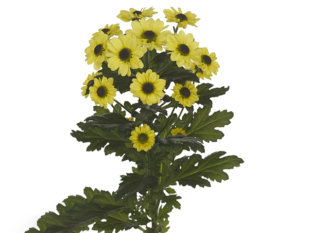 In conclusion, the Chrysanthemum (Indicum Grp) spray santini Yin Yang Yellow is a captivating chrysanthemum variety that showcases stunning yellow flowers with a touch of darker yellow towards the center. Its divided leaves and raceme or capitulum inflorescence add to its overall charm. Whether used in floral arrangements or planted in the garden, this chrysanthemum is sure to bring joy and beauty to any setting.