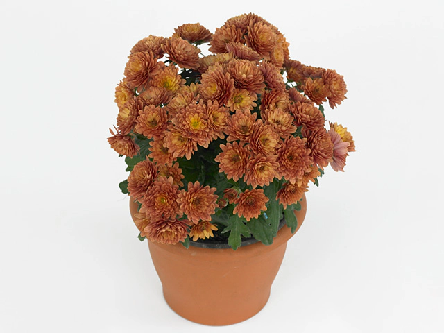 In conclusion, the Chrysanthemum (Indicum Grp) Paradiso Orange is a captivating flower variety with its double flower type, brown-orange color, and compact size. Its balanced proportions, pinnatifid leaves, and unicolored flower color distribution all contribute to its visually pleasing and enticing characteristics. Whether used as a focal point in a garden or as an accent in a floral arrangement, the Paradiso Orange chrysanthemum is sure to add a touch of elegance and beauty.