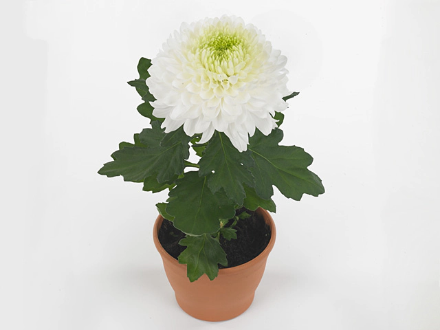 The leaves of the Chrysanthemum Magnum add to its overall appeal. With a size ranging from 7.5-10 cm, these leaves are of a suitable proportion to complement the flower's grandeur. They are pinnately lobed and divided/split, creating an intricate and elegant look. The main color of the leaves is a dark green, providing a beautiful contrast to the white flowers.