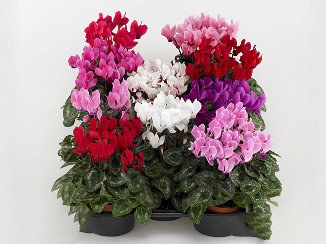 The Cyclamen persicum small flowered Midori Synchro~ALPINE VIOLET, commonly known as the Alpine Violet or Cyclamen, is a beautiful flowering plant that belongs to the Primulaceae family. This species is native to the Mediterranean region and is widely cultivated for its attractive flowers and foliage.