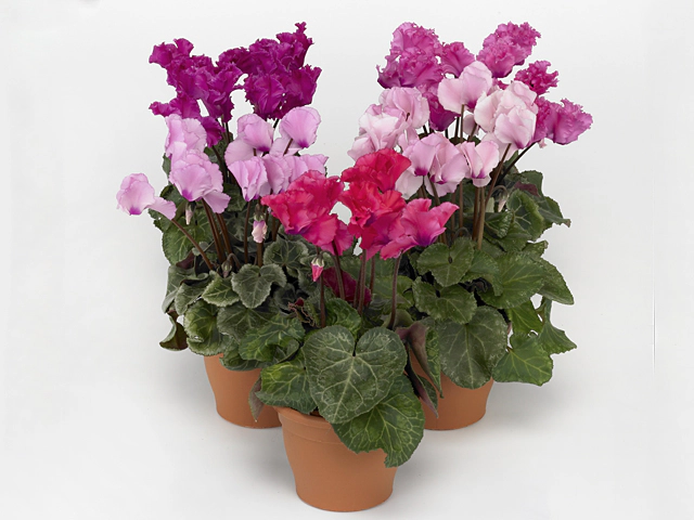 Cyclamen persicum, commonly known as Alpine Violet or Cyclamen, is a small flowering plant with distinctive features. One popular variety is the small-flowered Miniwella Twinkle, which is known for its charming appearance and delicate blossoms.