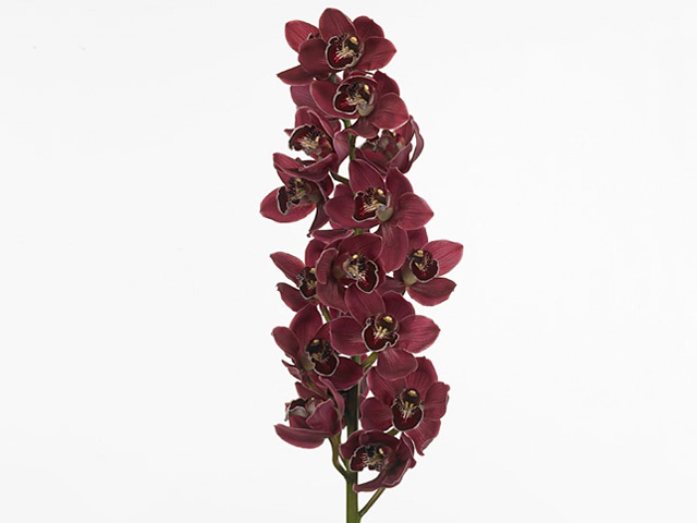The Cymbidium large flowered Blazing Fury 'Hades' is an exquisite orchid variety that captivates with its stunning appearance. While it may lack a scent, its vibrant red-dark purple red-187B petals make up for it with their mesmerizing beauty.
