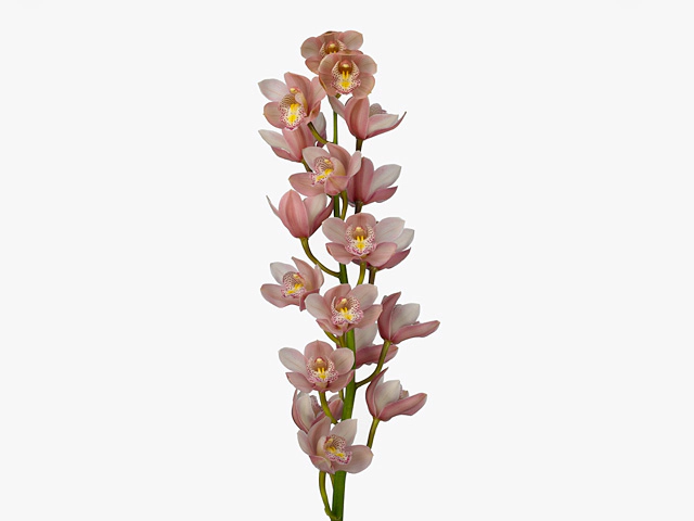 The inflorescence of the Cymbidium large flowered Floripink 'Felline' orchid is in the form of a raceme, which means the flowers are arranged on a single stem, forming a beautiful cascade. The inflorescence can reach a length of 50 to 75 cm, making it a standout feature of this orchid variety.