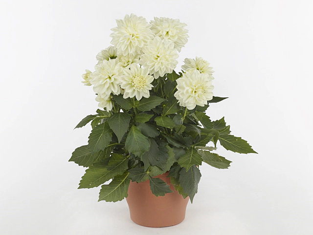 With a plant diameter of 25-30 cm, the Labella Grande White Impr.~DAHLIA requires ample space to grow and thrive. Its leaves are diversely compound, meaning they have multiple leaflets arranged along the stem. Leaf sizes can range from 7.5-10 cm to 10-15 cm, providing a varied and interesting foliage that complements the dazzling white flowers.