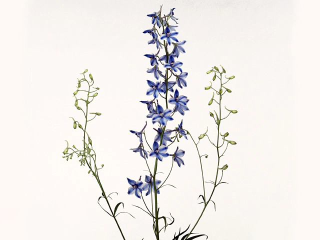 Delphinium, commonly known as Larkspur or Delphinium, is a stunning flowering plant that belongs to the Belladonna Group. One of the standout varieties in this group is the single flowered 'Delft Blue.' Known for its mesmerizing blue-medium blue blossoms, this plant also produces white flowers with white-999D coloring.